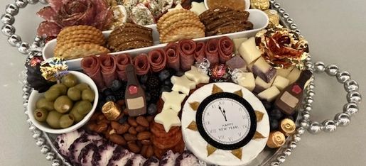 Welcome the New Year with our charcuterie boards, trays, hand-held glasses and graze tables. Order early!